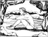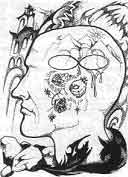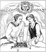 "Плененная и терзаемая душа бьется между своими двумя спутниками, из которых один - змей, сжимающий ее в бесчисленных кольцах, а другой - невидимый гений, призывающий ее, присутствие которого она ощущает лишь по трепету его крыльев и по молниеносным зарницам, вспыхивающим в ее глубине".