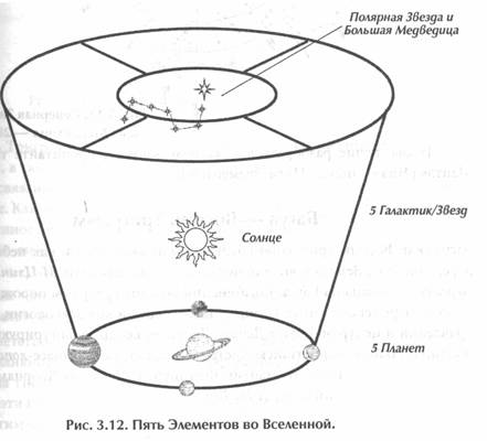 По этой причине даосы всегда рассматривали Северную Звезду в качестве центра звездного мира, а также как ворота в духовную сферу и в Дао. В планетарных и звездных медитациях мы вначале устанавливаем связь с Северной Звездой. Таким образом мы глубоко проникаем в мир звезд. Затем устанавливается соединение с галактиками, соответствующими Пяти Дворцам (Элементам). Астрологическое изучение двенадцати или двадцати восьми созвездий в сочетании с интенсивными медитациями об индивидуальных качествах этих символов