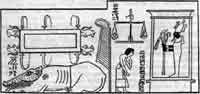 10. Умерший всегда ассоциировался с Осирисом, т. е. с солнцем, опустившимся за свой горизонт, который считался судьей и богом мертвых. Как солнце заходит за горизонт на западе и восходит на востоке, так и усопший покоится в гробнице на западном берегу Нила, а оправданный на суде в Зале Двух Истин, он направляется на восток, чтобы начать там новую жизнь.