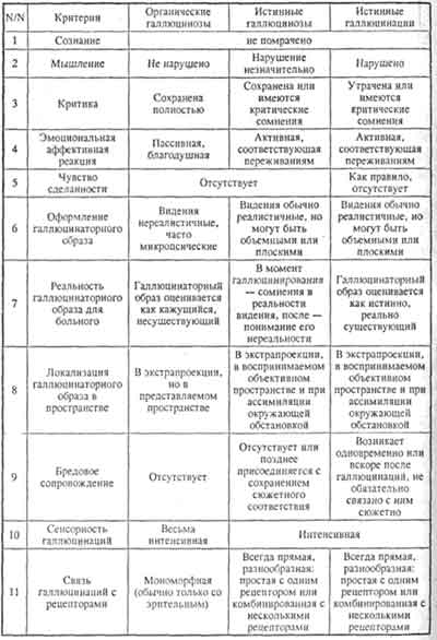 (галлюциноидов), большинства галлюцинаций и галлюцинозов истинных (непомраченного