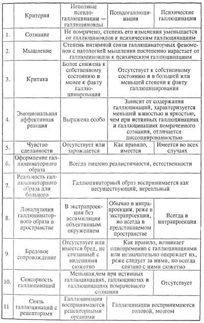 сознания, галлюциноиды и псевдогаллюцинации, психические галлюцинации.