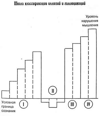 Указанное своеобразное положение эйдетизма между иллюзиями и галлюцинациями позволяет включить явления эйдетического ряда в классификационную таблицу иллюзорных и галлюцинаторных феноменов.