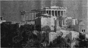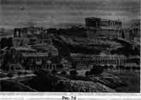 Вообще, в XIII веке функционирует весь афинский Акрополь как активная крепость, защищающая Афины. Лишь в новое время крепость была объявлена "очень-очень древней". Развалины Акрополя в том виде, в каком они были в XIX веке, показаны на рис. 7.6.