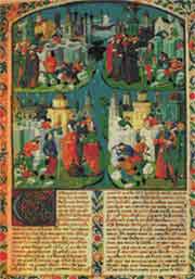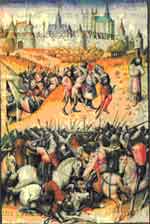 Старинная миниатюра, иллюстрирующая происхождение французов непосредственно от троянцев. "Античные" греки и троянцы изображены как средневековые рыцари в латах. Взято из [367], илл. 115.