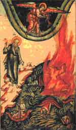 Средневековая иллюстрация к Апокалипсису. Там, где падает огонь "из трубы", поднимается пламя взрыва. По-видимому, изображена стрельба пушки. Взято из [212], т. 8, с. 451.