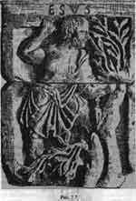 Кратко опишем ситуацию с историей древних религий. Сегодня нас уверяют, что каждая хронологическая эпоха имела свои собственные, индивидуальные религиозные культы, разделенные во многих случаях столетиями и даже тысячелетиями. Историки и этнографы XIX века провели огромную работу по сравнительному изучению всемирных религий и культов. Выяснилось, что между религиями, отделенными в скалигеровской хронологии друг от друга сотнями и тысячами лет, существует ненормально большое число "параллелей", иногда даже поразительных тождественных совпадений. Этот непреложный факт породил многочисленные теории влияний, заимствований, инфильтраций и т. п. Но все эти позднейшие рассуждения покоятся исключительно на скалигеровской хронологии и порождены ею. Изменение хронологии заставит пересмотреть и прежнюю точку зрения на развитие и формирование религий. Укажем здесь только некоторые типичные примеры параллелей, чтобы пояснить обнаруживающийся странный эффект "дублирования религий". Скорее всего, он порожден исключительно скалигеровскими сдвигами в хронологии.Так называемый "кельтический памятник", открытый в 1771 году, считается сегодня за изображение некоего языческого дохристианского бога лесов у галлов. (См. рис. 7.7.) Однако над головой этого бога отчетливо вырезано имя ESUS. То есть попросту Иисус. Под давлением скалигеровской хронологии историки тем не менее вынуждены были заявить, будто это "совсем не тот Иисус". А некий дохристианский "бог Иисус".