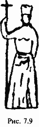 На рис. 7.9 приведено старое изображение "очень древней" финикийской богини Астарты. Однако в ее руках скипетр с христианским крестом. Только скалигеровская хронология мешает историкам религии сказать, что это средневековое христианское изображение.