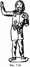 На рис. 7.10 мы видим якобы "древне"-галльскую статуэтку "древ-не"-франкского бога Юпитера. Однако вся его одежда покрыта обычными христианскими крестами.