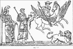 На рис. 7.17- удивительное "античное" изображение якобы "античного" Беллерофонта, борющегося с химерой. Но ведь это просто средневековый Георгий Победоносец, сражающийся с драконом! Только гипноз неправильной скалигеровской хронологии мешал увидеть это почитателям "глубокой античности".