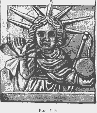 На рис. 7.15 - "древняя" статуэтка, найденная в Гиссарлыке в Малой Азии и изображающая богиню Майю. Скорее всего, это Мария Богородица, представленная здесь как будущая мать Иисуса Христа. Христианский крест здесь нарисован в виде свастики.