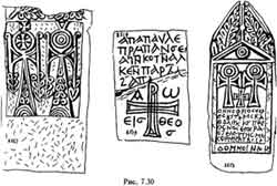 На рис. 7.30 мы приводим средневековые коптские изображения христианских крестов. Напомним, что копты - это египетские христиане средних веков. Совершенно ясно видно, что средневековые коптские кресты с ушком практически тождественны "древне"-египетским крестам с ушком.