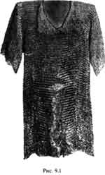 Во многих книгах, рассказывающих о Куликовской битве, приводят фотографию кольчуги, якобы найденной на Куликовом поле в Тульской области (рис. 9.1). Однако ее прекрасная сохранность выглядит крайне подозрительно для кольчуги якобы шестисотлетней давности. Нас хотят убедить, будто эта рубашка, сплетенная из тонких металлических колец, пролежала в земле около шестисот лет. Потом ее якобы выкопали, аккуратно расправили, стряхнули с нее влажную землю и отнесли в музей. Однако за столько лет она должна была бы превратиться в спекшийся каменно-металлический клубок, который невозможно было бы не то чтобы расправить, но даже отделить от него отдельные кольца. Нам представляется, что эта кольчуга изготовлена сравнительно недавно. Ее выдали за "древнюю", чтобы показывать нам хотя бы один образец старинного военного снаряжения, якобы выкопанного на "Куликовом поле" Тульской области.