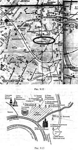 Спрашивается, есть ли в Москве река Сосна и Брашева=Боровиц-кая дорога, по которой шли войска Владимира Андреевича? Да, есть. На окраине Москвы протекает река Сосенка. Рядом - поселок Сосенки (рис. 9.18 и 9.19). Речка Сосенка находится непосредственно около московской кольцевой дороги, в секторе между продолжениями Ленинского проспекта и Профсоюзной улицы. Мимо реки Сосенки, по другую сторону от Ленинского проспекта, в центр Москвы, по правую сторону Москвы-реки, проходит старая Боровская дорога.