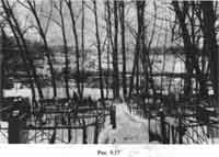 В январе 2001 года мы побывали на реке Чура в Москве. Сегодня подойти к ее берегам непросто - большой район обнесен сплошными заборами, ведутся строительные работы. Еще ранее долина реки Чуры была, оказывается, засыпана. В результате Чура сильно обмелела. Сегодня пройти к реке можно лишь по узкому проходу через старое Татарское кладбище. На рис. 9.15-9.17 представлен современный вид реки Чуры. Сейчас здесь возводят эстакаду, и вся территория вскоре сильно изменит свой вид.
