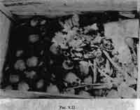 Недавно, незадолго до нашего посещения, в десяти метрах от церкви начали копать погреб. Только с этой небольшой площадки было выкопано столько черепов и костей, что хватило заполнить тот самый ящик объемом в два-три кубометра, который мы увидели, войдя на территорию церкви. Его-то как раз и хоронили. По нашей просьбе рабочий любезно поднял крышку (рис. 9.23). Ящик был заполнен человеческими костями и черепами. Мы его сфотографировали. Место захоронения ящика - примерно в десяти метрах от северной стены церкви. Рабочие, откапывавшие все эти кости, рассказали нам о нескольких поразивших их вещах.