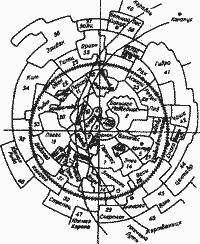 Рис. 2.5Итак, "восстанавливая старые данные" Птолемея в одном отношении, издатель греческого текста улучшал их в другом. Это не согласуется с гипотезой оригинальности греческого текста. Поэтому в дальнейшем, чтобы не углубляться в эти довольно субъективные соображения, мы будем опираться на каноническую версию каталога, основанную на рукописях Альмагеста.