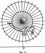 Рис. 2.4Теперь мы можем оценить то время, через которое северный полюс станет ближе к Полярной звезде, чем к Бете. Здесь мы не стремились к точным вычислениям, поскольку не рассматриваем этот метод датировки каталога как существенный. Это лишь первоначальные, вспомогательные рассуждения. Грубая оценка показывает, что примерно через 7-9 столетий - отсчитывая от II века н. э. - звезда Альфа действительно станет ближайшей к северному полюсу. Таким образом начиная примерно с IX-XI веков н. э. и до нашего времени мы получаем следующую сравнительную таблицу для звезд Альфа и Бета.