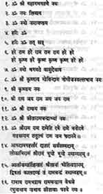 И наконец, она имеет килаку (колышек, клин). Он запирает мантра-чайтаныо, скрытую в мантре. Когда продолжительное постоянное повторение имени устраняет пробку, скрытая чай-танья высвобождается. Бхакт удостаивается лицезрения Ишта-дэваты.