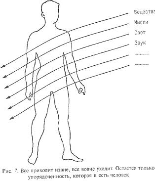 Человек, являясь частью мира и частью Бога, естественно, является продуктом той же закономерности - он творит более сложную упорядоченность, используя энергию, содержащуюся в более простых, и является по определению элементом Бога.