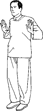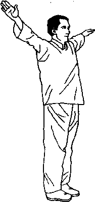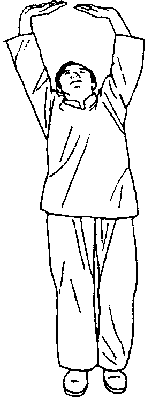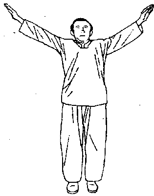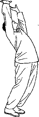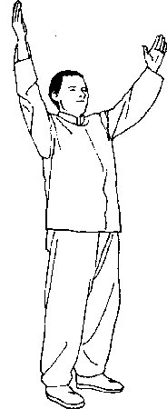 Это упражнение называется “подъем неба”. Как и во многих других случаях, его форма обманчиво проста. Важна не форма сама по себе, а поток энергии, порождаемый выполнением упражнения. Выполняйте хотя бы только это упражнение по десять раз каждое утро, не пропуская ни одного дня в течение трех месяцев. Результаты будут весьма ощутимы и вы поймете, почему “подъем неба” — одно из лучших упражнений цигун.