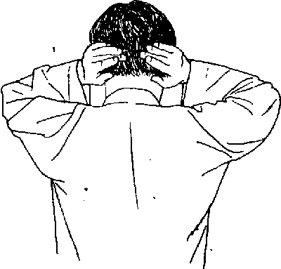 Посмотрите на пальцы рук, подняв голову. Плавно задержите дыхание.