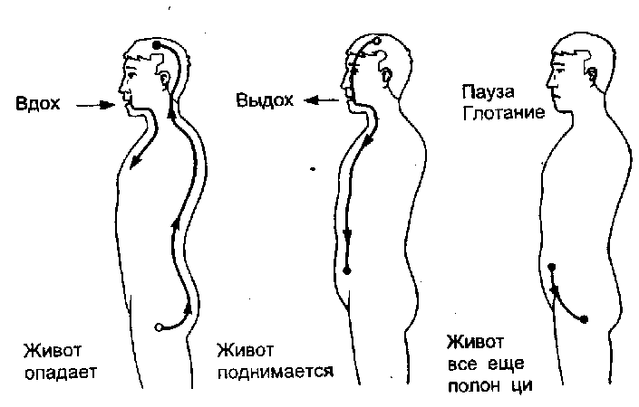 Однако чрезвычайно важно плавно дышать. Обычно начинающие стараются дышать как можно глубже. Они думают, что чем глубже вдох, тем больше прибудет силы. Это неверно. На занятиях цигун вдыхается не просто воздух, а космическая энергия. Усилия при вдохе часто препятствуют потоку космической энергии.