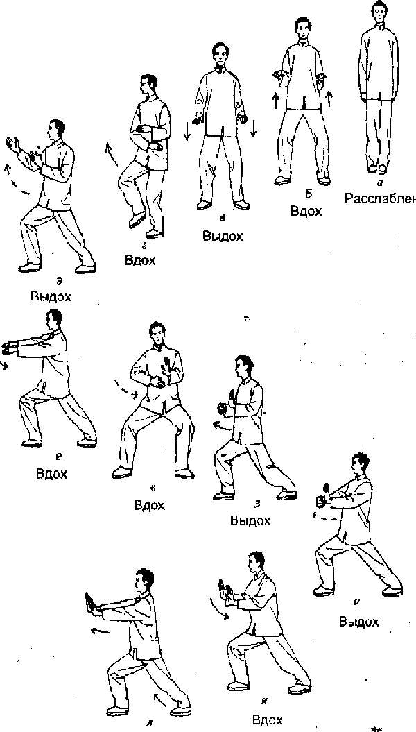 Следующее упражнение является одним из лучших в цигун — оно полезно как для начинающего, так и для мастера. Причем допустимы некоторые отклонения в технике выполнения, даже небольшие ошибки.