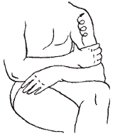 Рука пациента опущена под углом 45° к телу. Массажист внешними краями больших пальцев, слегка касающихся друг друга, надавливает на каждую точку поочередно. Продолжительность нажима – 3 сек.