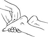 Массажист кладет одну руку у основания пальцев, другой обхватывает лодыжку и медленно, в течение не меньше чем 10 сек., сгибает стопу в направлении колена. Достаточно выполнить движение 1 раз.