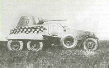 Бронеавтомобиль имел экипаж из восьми человек и внушительные размеры - 5700 х 2300 х 2800 мм, что предопределило его применение как противо-штурмового самоходного орудия - своеобразной подвижной огневой орудийно-пулеметной точки, быстро перебрасываемой на необходимые участки фронта. В дальнейшем машина подвергалась модернизации, учитывавшей опыт ее боевого применения.