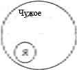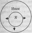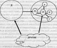 В очень упрощенной форме сказанное можно представить следующим образом. Есть тот кусочек мира, который мы смогли познать, понять и превратить в свою собственность - в свою внутреннюю картину мира. Это и есть наше большое "я", вернее, те границы, до которых наше "я" могло бы расшириться. Но процесс нашего познания неполон и противоречив, поэтому внутри нашей картины мира множество элементов противоречат друг другу, и мы просто не можем объединить их в одно целое. Поэтому мы поступаем следующим образом: разбиваем наш мир на множество независимых частей, одну из которых мы занимаем сами, а остальные отождествляем с другими людьми.