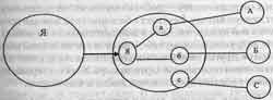 После того как вы разделили свою внутреннюю картину мира на маленькое "я" и ряд противостоящих ему элементов, вы без труда персонифицируете их, связываете их с какими-то людьми во внешнем мире. При этом главное - это сохранять дистанцию. Поскольку маленькое "а" противостоит вашему "я", обозначая, например, "агрессивность", то и его носитель "А" должен всегда проявлять это качество. Если он вдруг отказывается играть свою роль, вы всегда находите способ привести его в нужное состояние. То же самое и по отношению к "б" - пусть это будет "бедность". Его персонификация "Б" обязана постоянно подчеркивать ваш собственный достаток. Если вдруг "Б" разбогатеет, вы просто прервете с ним все отношения, найдя на его место кого-нибудь другого. В любом случае вы будете искать способ сохранить стабильность своей картины мира.
