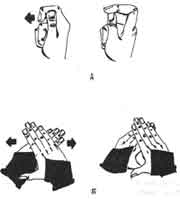 Вернейшим другом лазутчика была темнота, и он досконально изучил ее возможности и недостатки. Невидимка знал, что даже слабый свет в кромешной тьме снижает чувствительность ночного зрения в сотни раз, а потому охрана, сидящая у костра, хотя и вглядывалась во тьму, но видела не так уж и много. По той же причине он и сам избегал смотреть на огонь, а в случае необходимости использовал только один глаз (чаще правый), тогда как второй прикрывал при этом капюшоном или рукой. Чтобы уменьшить засветку действующего глаза, применяли различные приемы ограничения угла зрения. Можно было, например, смотреть сквозь регулируемое отверстие, образованное большим и указательным пальцами одной руки (рис. 66а), либо через такое же изменяемое отверстие, возникающее между большими и указательными пальцами обеих кистей при их наложении друг на друга (рис. 66б).