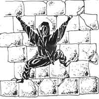 Чтобы преодолеть стены вражеского замка или недружественного монастыря, применяли различные спецсредства вроде веревок, шестов или лестниц, но значительно менее заметным (особенно ночью) было вползание по стене в стиле паука с использованием ножных и ручных когтей (асико и сюко), а чаще и вообще без каких-то там приспособлений. В технике такого лазания действовали с растянутыми конечностями и всегда сохраняли опорный контакт трех точек, тогда как четвертая смещалась и выбирала для себя новое базовое место (рис. 67). Распластывание тела по рабочей поверхности с естественным положением рук и ног устраняло излишнее напряжение и усталость мышц, сокращение и расслабление которых согласовывали с ритмом дыхания. Поскольку стены любой, даже неприступной, твердыни имели много щелей и выбоин, применение утонченной техники ментального вживания в камень, используемой иногда в скалолазании (тохэки-дзюцу), здесь было обычно излишним.