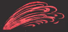 Встречая друга. Рис. 35 даёт нам пример хорошей, ясно очерченной и выразительной мыслеформы, где каждый цвет хорошо отделён от других. Она представляет чувство человека при встрече с другом, с которым он был долго разлучён. Выпуклая поверхность полумесяца находится ближе к думающему, а два его конца вытягиваются к приближающемуся другу, будто стараясь обнять его. Розовый цвет, естественно, говорит об испытываемой любви, светло-зелёный показывает глубину симпатии к нему, а чистый жёлтый — знак интеллектуального удовольствия, с которым создатель этой мысли предвкушает возрождение восхитительных воспоминаний давно прошедших дней.