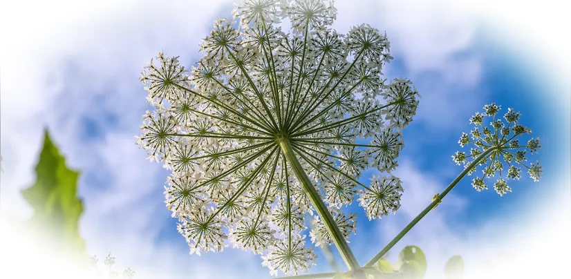 Основной угрозой являются соки борщевика, содержащие особые химические соединения — фурокумарины. Эти вещества делают кожу чрезвычайно чувствительной к солнечному свету, вызывая серьезные ожоги даже при кратковременном воздействии ультрафиолетовых лучей. Кожа становится гиперчувствительной, возникают покраснения, волдыри и долго заживающие раны. Такие повреждения представляют опасность не только летом, но и весной и осенью, когда солнце кажется менее активным.
