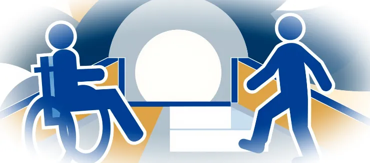 - Физическая доступность: пандусы, лифты, широкие проходы, адаптированные туалеты, тактильные покрытия и указатели для слабовидящих, визуальные и звуковые оповещения для слабослышащих.