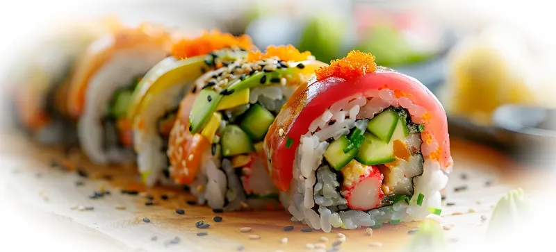 Западная версия классических макисуши, известная своей необычной подачей: рис снаружи, а лист нори спрятан внутри. Именно такие роллы стали особенно популярны благодаря изобретению знаменитого «Калифорния-ролла», ставшего визитной карточкой японской кухни за пределами страны.