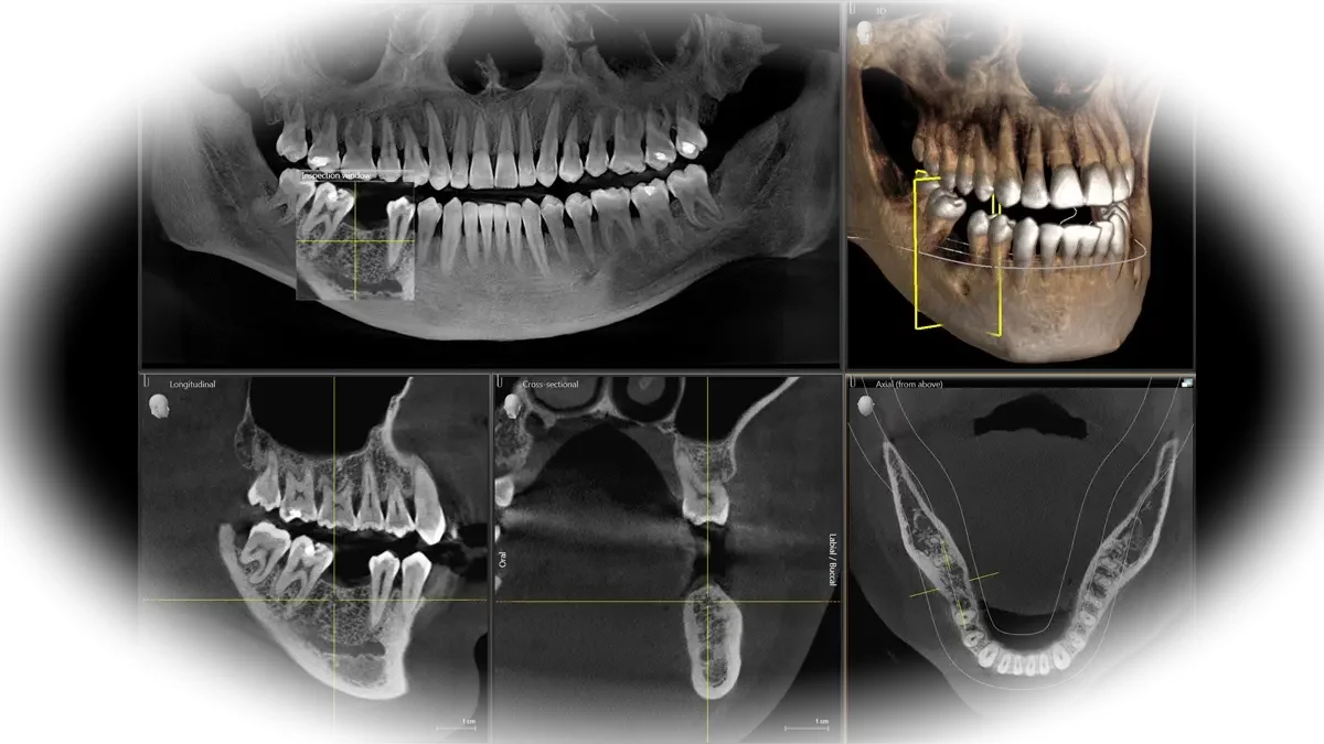Трехмерная томография, или конусно-лучевая компьютерная рентгенография — это современный диагностический метод, который дает четкое изображение зубов и костных тканей челюсти с целью терапии патологий различной сложности (установка имплантов, удаление зубов мудрости и другие стоматологические манипуляции). Результат исследования со 100% точностью позволяет установить правильный диагноз и назначить адекватное лечение.