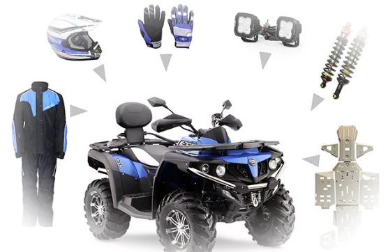 Для того, чтобы получить более функциональный транспорт и попросту иметь большее удобство для того, чтобы ездить на квадроцикле, полезно использовать разнообразные аксессуары и различные дополнения. Таковыми могут выступать самые разнообразные товары: кофры для квадроциклов, насосы и другая полезная техника; смазки и масла; одежда и экипировка; колесные брызговики; зеркала, крылья, свет.