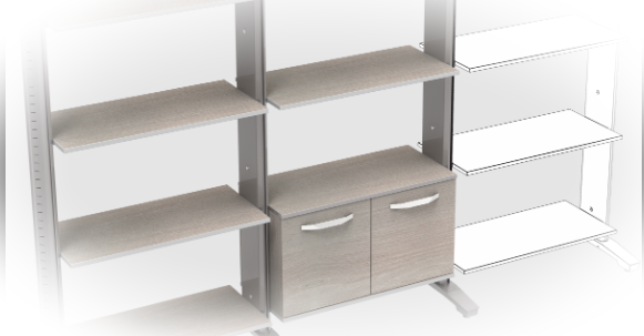 Для эстетичного обустройства офисного пространства стеллажи могут быть изготовлены не только с открытой лицевой стороной, но также иметь распашные или раздвижные дверцы, которые скрывают находящиеся на полках предметы.