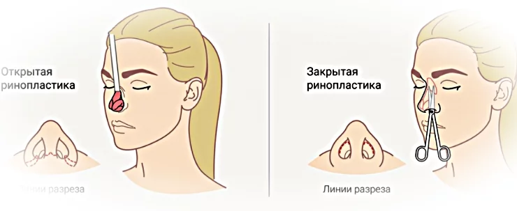 Сама операция является косметической и функциональной хирургией носа, которая может занимать несколько часов часов. При этом, наркоз может применяться как общий, так и местный с использованием седативных препаратов. Большая часть операций представляет собой закрытую ринопластику, при которой разрезы делают во внутренней части ноздрей: https://www.sharmclinic.ru/uslugi/rinoplastika/zakrytaya/. Однако, есть случаи, когда ринопластика выполняется открытым методом (разрезы делаются в области между ноздрей).