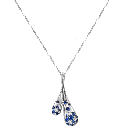 Голубые сапфиры в белом золоте создают чистое сияние, подчеркивающее прозрачность кожи и глубину глаз.
